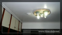其實不止飯廳中獎, 白天時蝌蚪臥房的天花板也掉了一塊水泥下來, 水漏到蝌蚪嫂掛在衣架上的衣服都濕掉了. 好在到了晚上蝌蚪臥房的水也停了, 不然搞不好今晚要撐傘睡覺 @@"