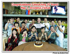 時間拉回到現在, 2010 年 5 月 1 日, Geocaching 官方為了慶祝 SA 取消以及 Geocaching 誕生十年, 對全球的玩家發佈了一項活動消息:在 5/1 和 5/2 這兩天任何人都可以舉辦一個聚會並且在網路上發佈聚會的座標, 無論聚會的內容為何, 只要有超過十位玩家出席聚會並拍下照片就可以獲得一個 Geocaching 十週年的紀念圖示以資紀念.